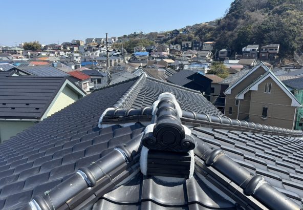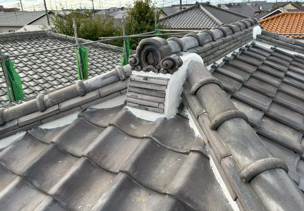 野田市で瓦屋根の棟の積み直し工事を行ってきました。